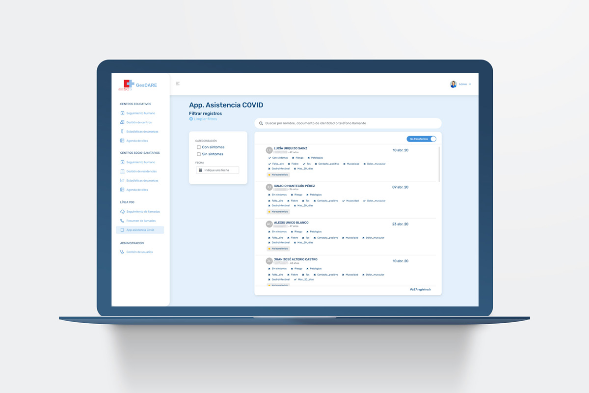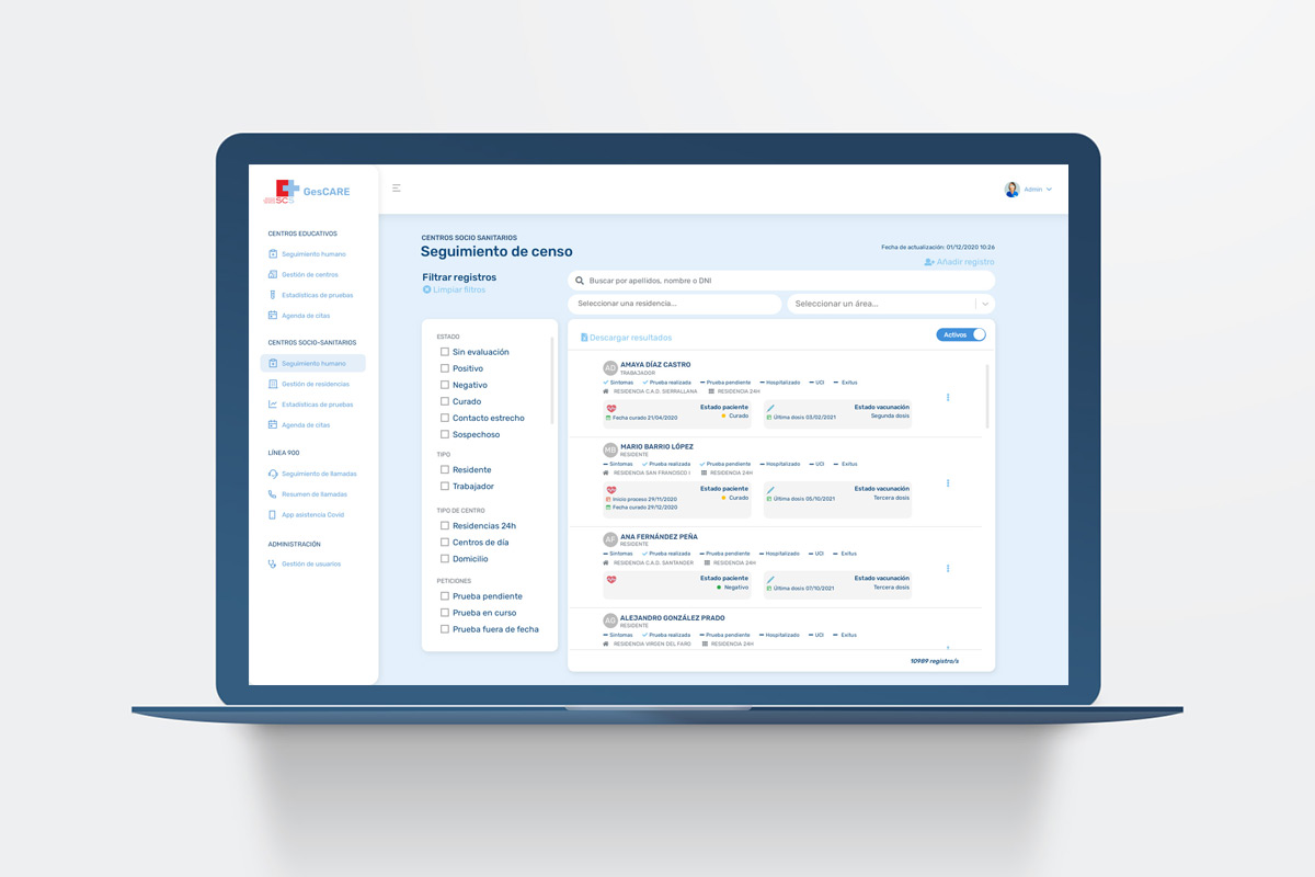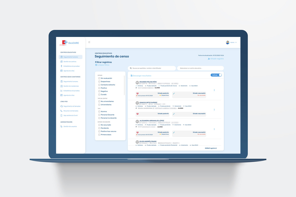 La solución permitió centralizar la gestión de casos COVID-19, facilitando el seguimiento de contactos, la coordinación entre hospitales, residencias y centros educativos, así como la programación y control de pruebas diagnósticas en uno de los momentos más críticos de la pandemia.