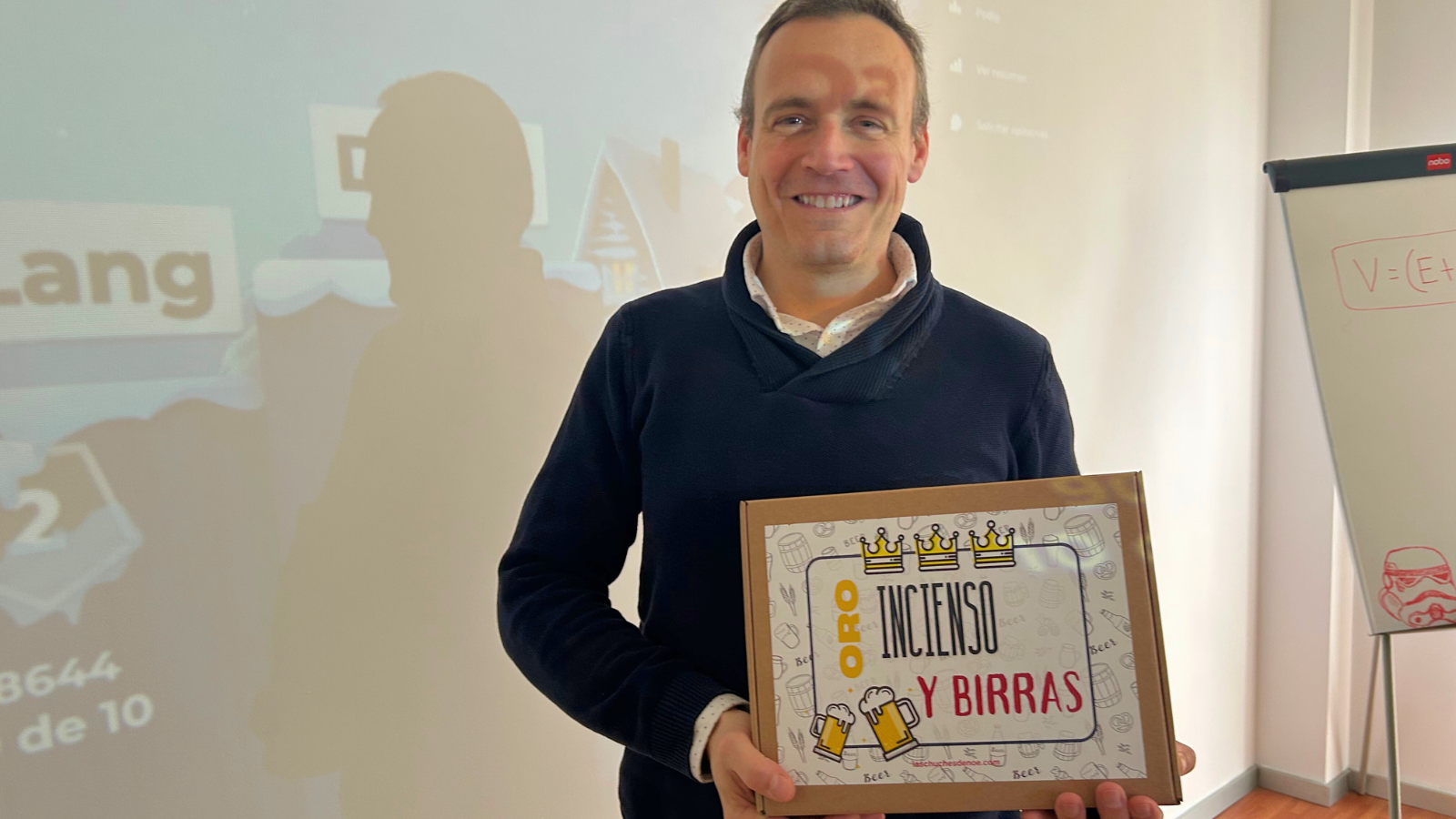 Tras una emocionante y divertida competición, David Pérez, director de Desarrollo de Negocio, se alzó como ganador del trivial. Su conocimiento y rapidez fueron premiados con una caja de «oro, incienso y birras«, un regalo que incluía productos navideños entre los que destacaban tres cervezas representando a los tres Reyes Magos: Melchor, Gaspar y Baltasar.